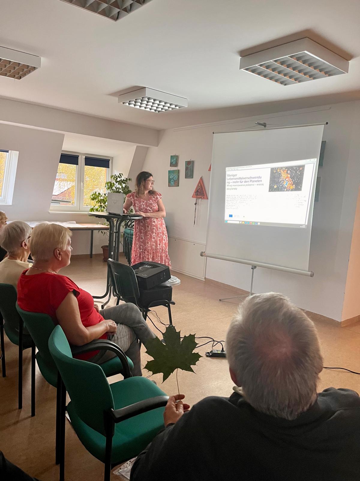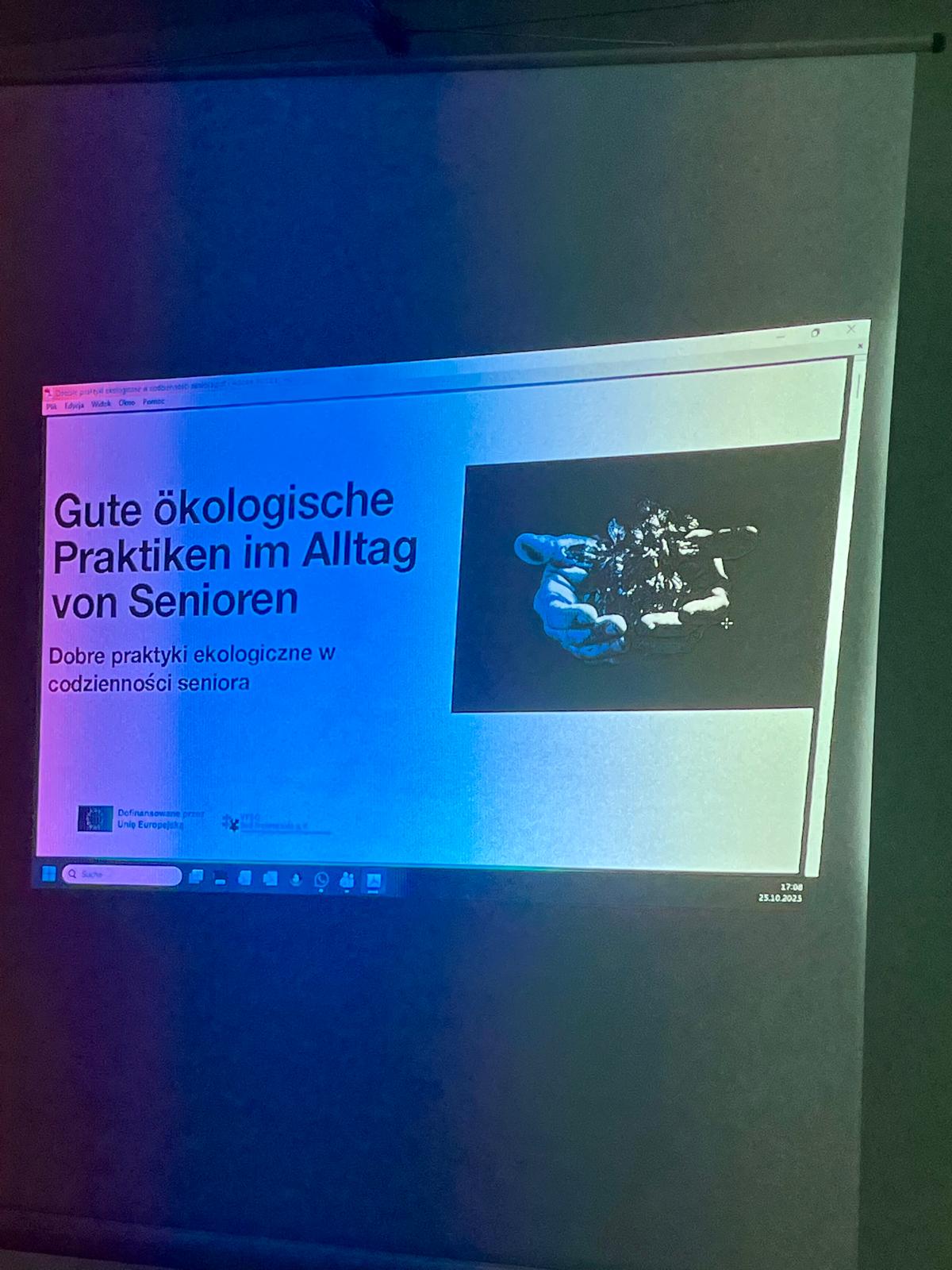 Popołudnie poświęcono warsztatom „Ekologiczny obywatel Europy”. Seniorzy pracowali w grupach nad mini-projektami ekologicznymi inspirowanymi dobrymi praktykami z różnych państw. Każdy zespół opracował swój pomysł, nadał mu nazwę, przygotował krótką prezentację i wziął udział w głosowaniu. Była to okazja do rozwijania kompetencji społecznych, umiejętności argumentacji oraz współpracy ponad granicami kulturowymi. Na zakończenie dnia uczestnicy przygotowali symboliczne kartki pocztowe do wybranych krajów Unii Europejskiej. W kilku zdaniach dzielili się swoją refleksją z dotychczasowych działań oraz przedstawiali pomysły na kontynuację współpracy ekologicznej po powrocie do swoich społeczności.